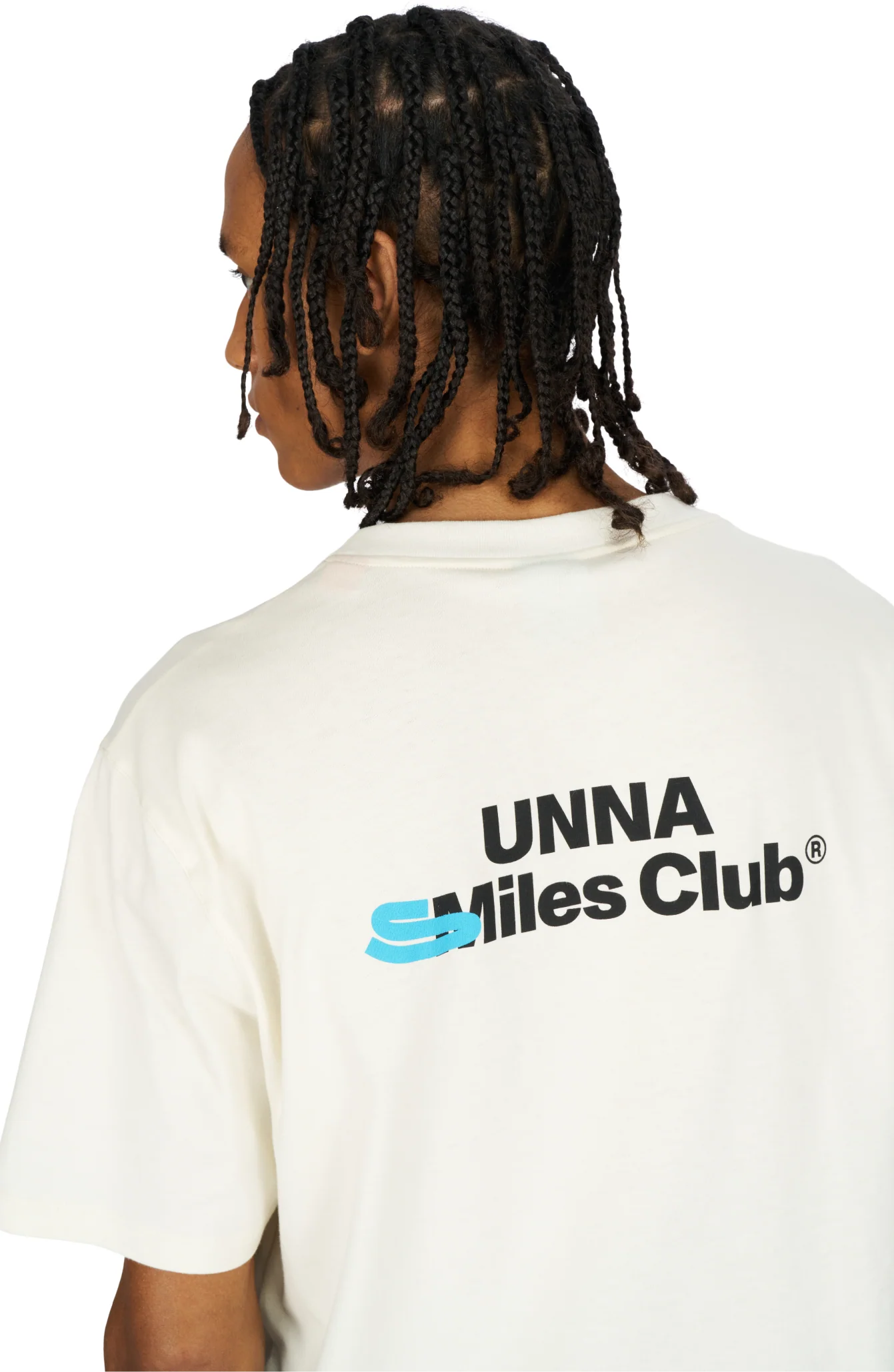 Men's T-shirt in Vanilla White with a regular fit and brushed finish. Organic Cotton & Recycled Polyester blend. Unna logo in the front and UNNA Smiles Club Print on the back.